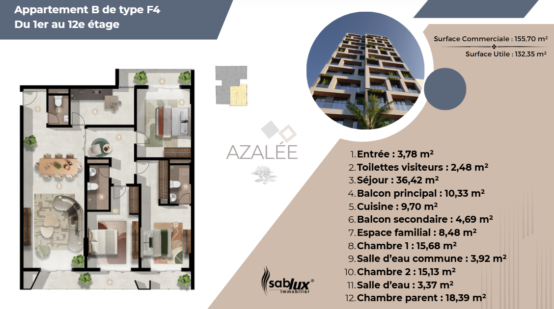 Ce projet signé Sablux incarne une vision moderne de l’habitat urbain et de l’investissement immobilier, où design architectural, volumes lumineux et confort se conjuguent pour offrir un cadre de vie durable.